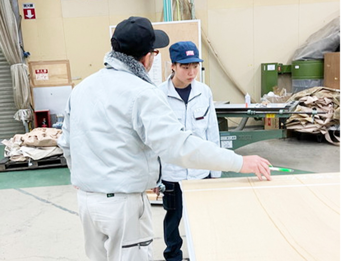 体験前は「家具作りは機械によるものがほとんど」というイメージを抱いていたそうですが、実際には手作業が多いことに驚き、「立ちっぱなしで作業するのは大変」と感じる場面もありました。普段何気なく使っている家具やミラーの裏側にある職人の努力と多くの工程を知り、新鮮な気づきを得ている様子でした。体を動かす仕事でお腹が空くようで、「お弁当は今日も大盛りにして来ました」と笑顔で話す姿もとても初々しく感じられました。